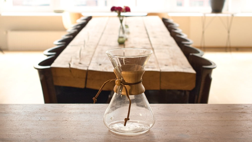 The CHEMEX® coffeemaker was invented in 1941 by the eccentric chemist Dr. Peter Schlumbohm. He desired not only to make brewing the perfect cup simple, but also to have the vessel be a thing of beauty. The Chemex Coffeemaker -an icon of American history- is "one of the best-designed products of modern times" and is included in the Museum of Modern Art collection in New York City.