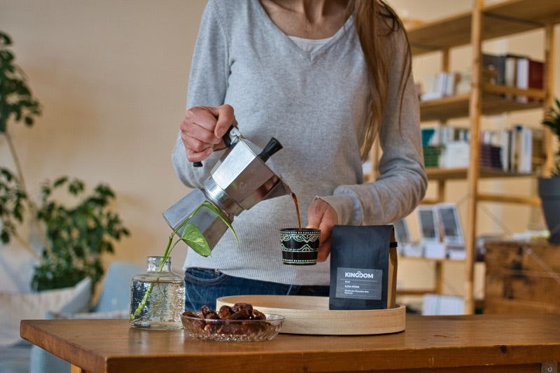 Tip: We recommend freshly ground beans for the best flavour experience. Refrain from tamping the coffee in a Moka Pot- it will lead to over-extraction. Just level the bed for even extraction and prevent grinds on the rim from causing water leakage.